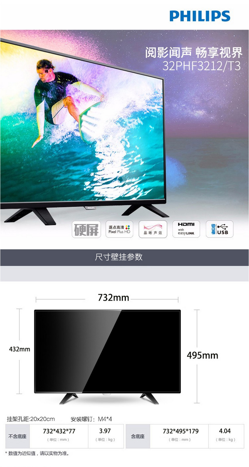 • 商品名稱:飛利浦(Philips)LED電視機(jī)32PHF3212/T3黑色32寸