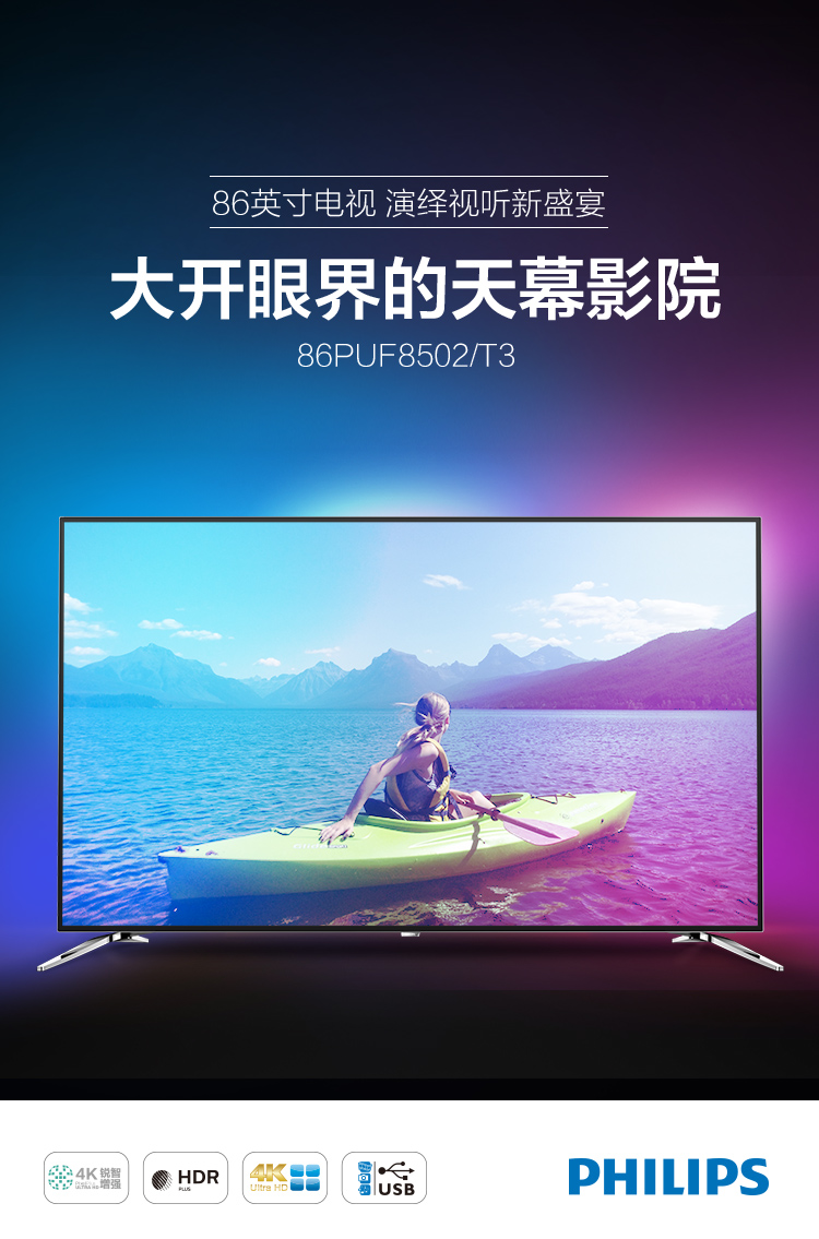 • 商品名稱:飛利浦(Philips)LED電視機(jī)86PUF8502/T3黑色86寸