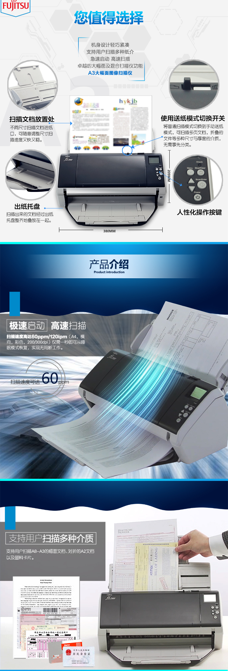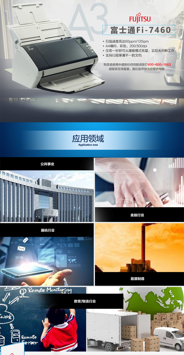• 商品名稱:富士通(Fujitsu)圖像掃描儀Fi-7460 A3幅面自動(dòng)饋紙式高速文檔掃描儀