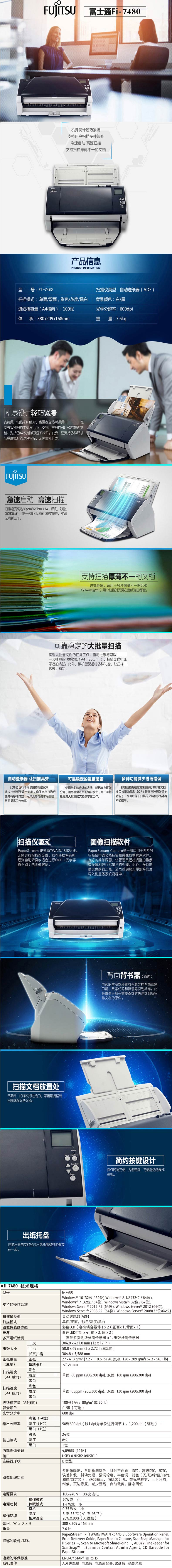 - 商品名稱:富士通(Fujitsu)圖像掃描儀Fi-7480 A3幅面自動(dòng)饋紙式高速文檔掃描儀
