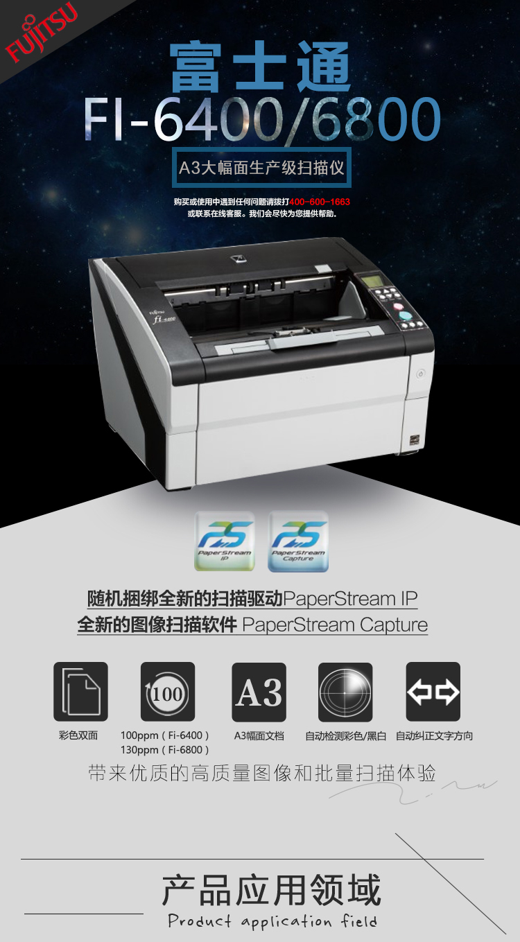 • 商品名稱:富士通(Fujitsu)圖像掃描儀Fi-6400 A3幅面自動(dòng)饋紙式高速文檔掃描儀+手動(dòng)送紙