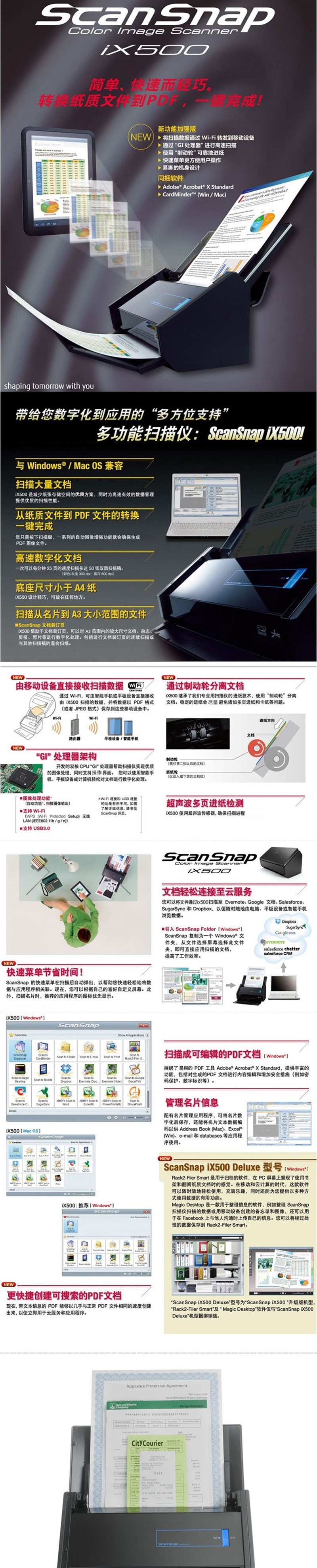 • 商品名稱:富士通(Fujitsu)ScanSnap ix500高速自動雙面A4掃描儀
