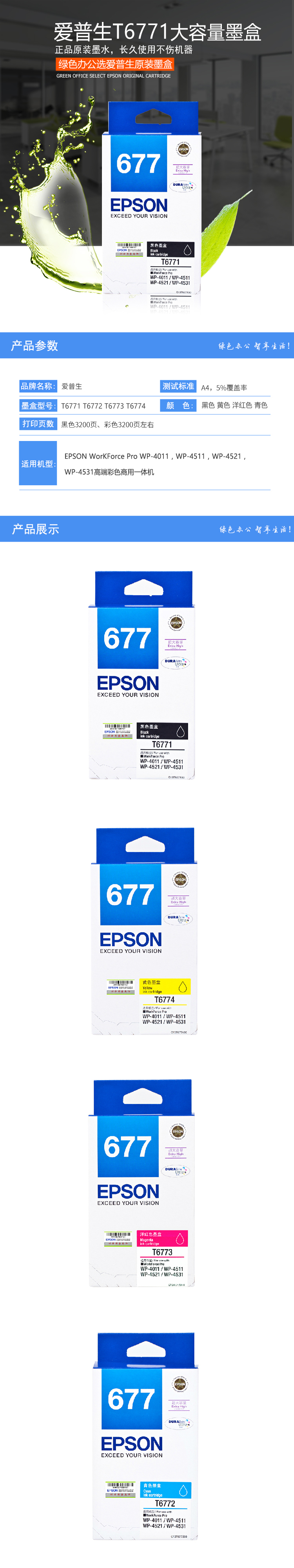 - 商品名稱:愛(ài)普生(EPSON)T6772青色墨盒 適用于WP-4011 4511 4521 6773