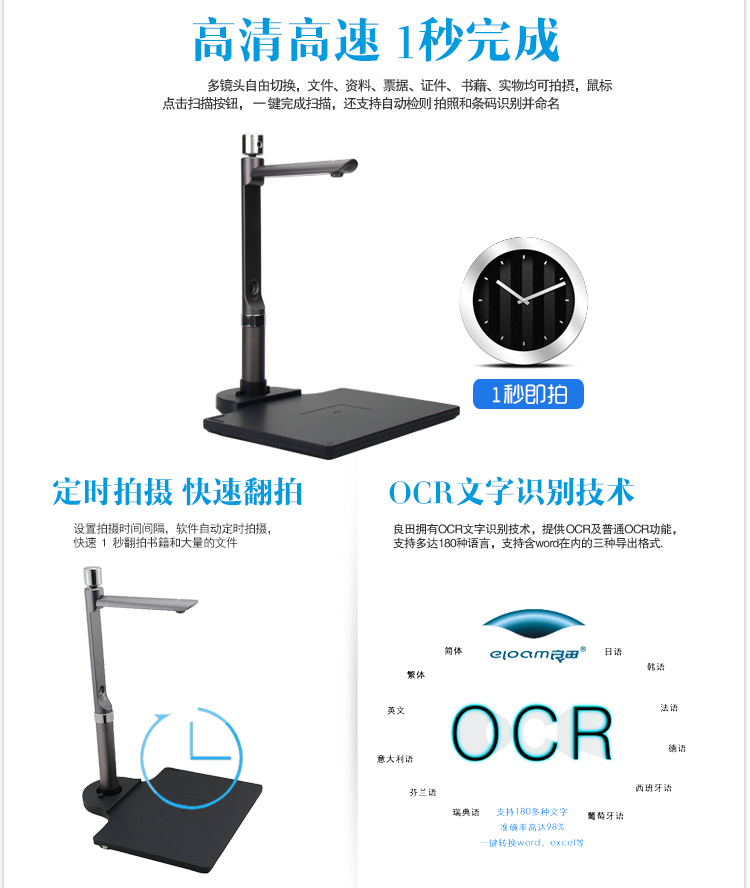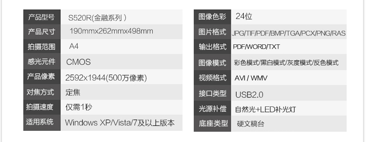 良田(eloam) S520R A4幅面高拍儀 速度約1秒 色彩24位 分辨率2592×1944dpi
