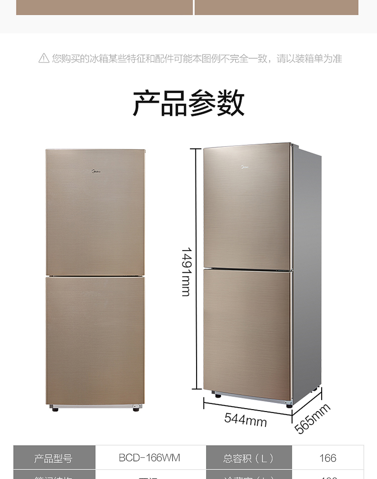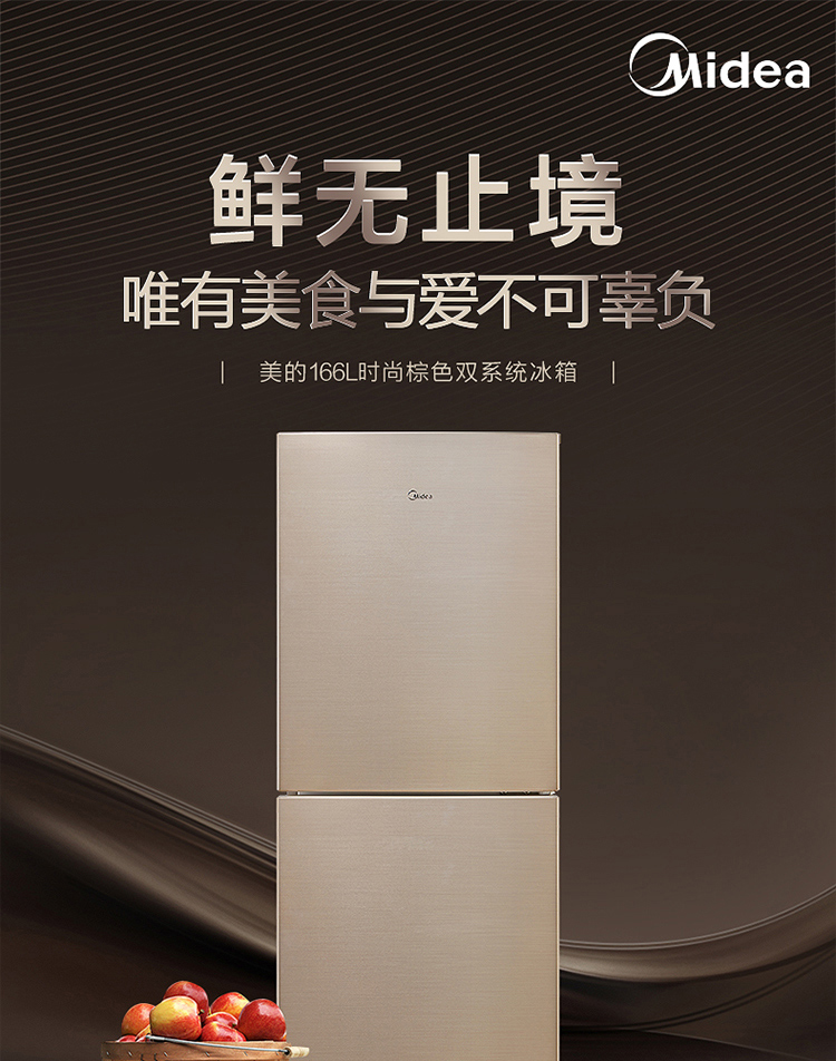 • 商品名稱:美的(Midea)166升 風(fēng)冷無霜 電腦控溫 母嬰小冰箱 BCD-166WM 雙系統(tǒng)雙門電冰箱 感溫探頭 爵士棕