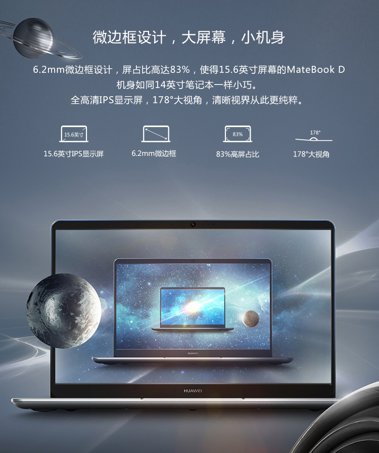 華為(HUAWEI)MateBook D MRC-W50 輕薄商務(wù)筆記本電腦 15.6英寸 皓月銀(I5-8250U/8G內(nèi)存/128G固態(tài) 1T機(jī)械/2G獨(dú)顯/無光驅(qū)/Windows 10 正版Office/二年保修)