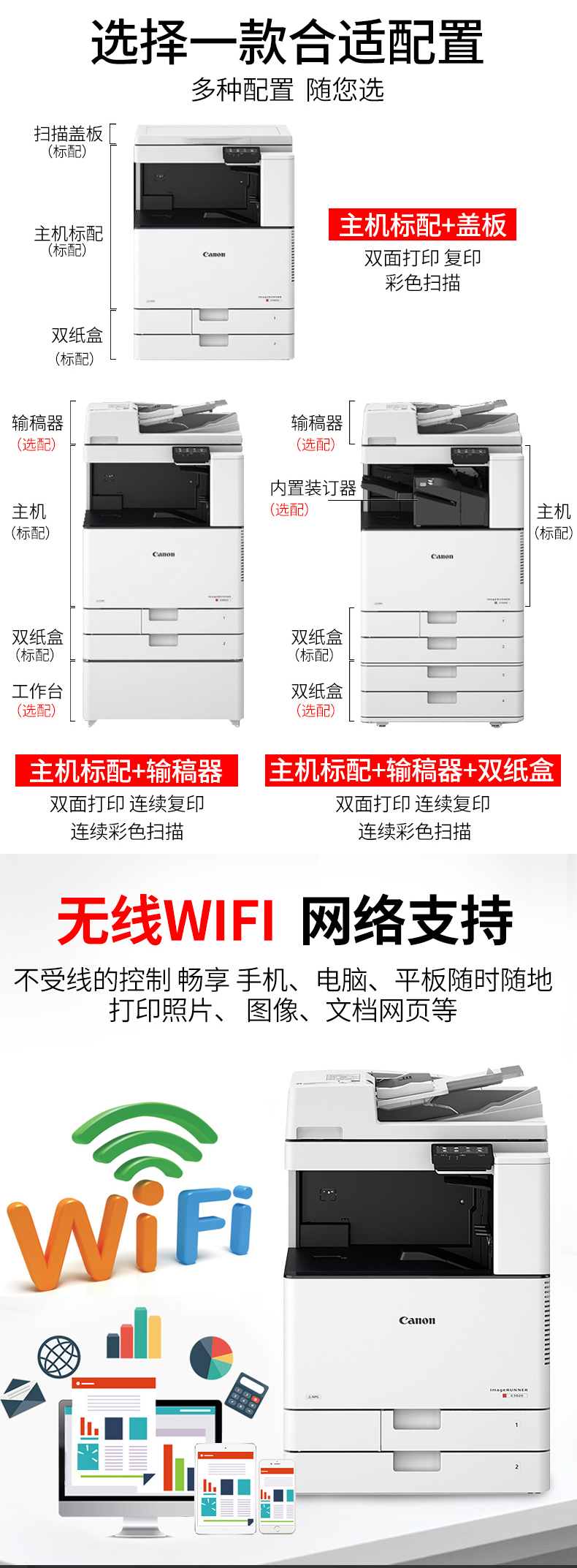 佳能(CANON)iR C3025 A3彩色激光數(shù)碼復合機(雙面打印/復印/掃描/WiFi)蓋板