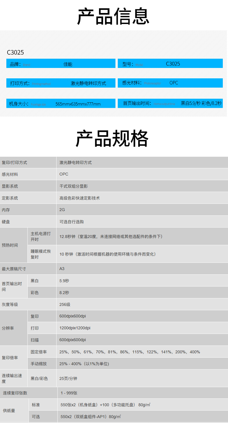 • 商品名稱:佳能(CANON)iR C3025 A3彩色激光數(shù)碼復合機(雙面打印/復印/掃描/WiFi)蓋板