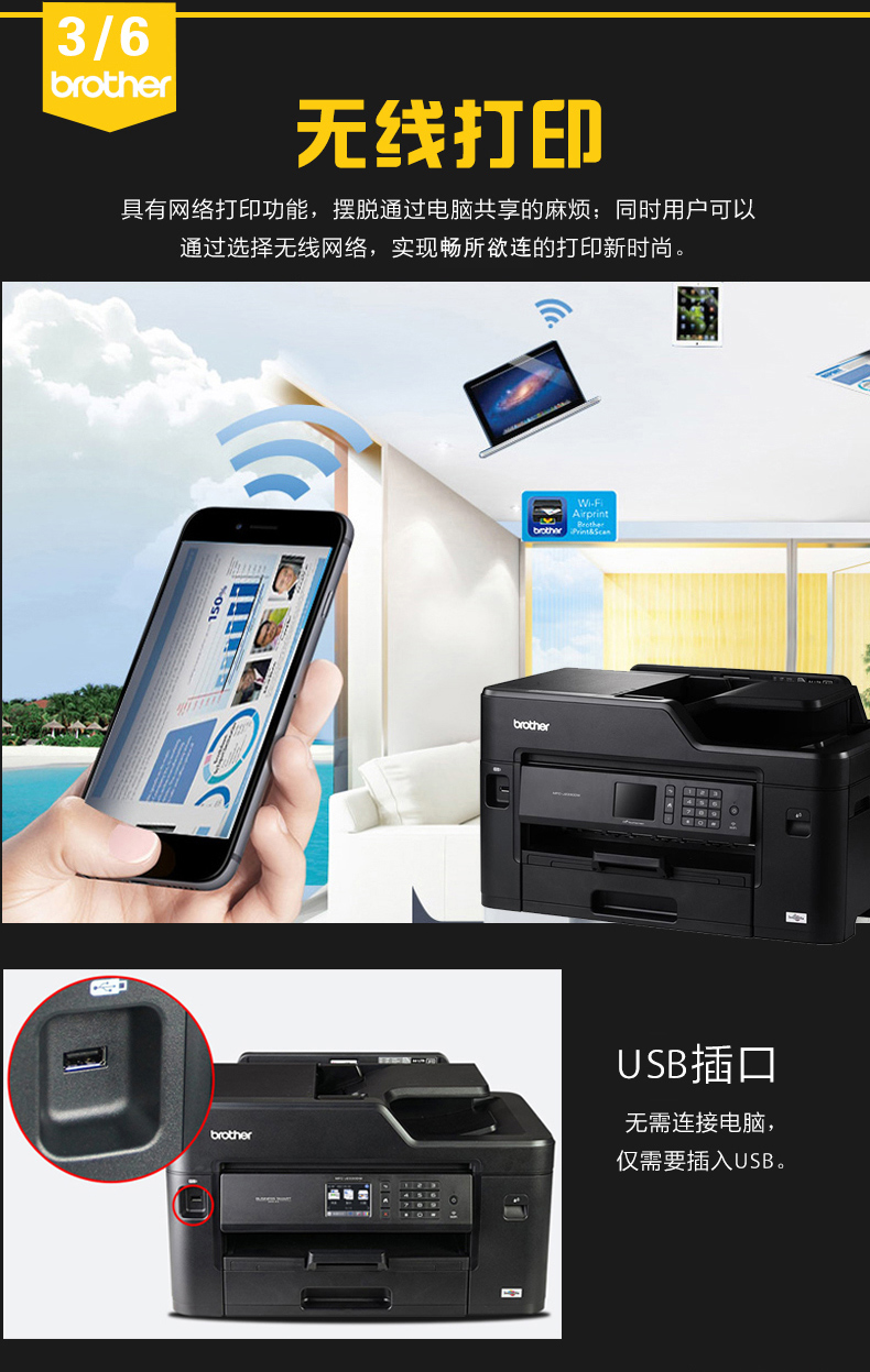 兄弟(BROTHER)MFC-J2330DW A3幅面 彩色噴墨多功能一體機(jī)(打印/復(fù)印/掃描/傳真)