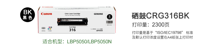 • 商品名稱:佳能(Canon)CRG-316BK 黑色硒鼓(適用于LASERSHOT LBP5050 5050n)(kj)
