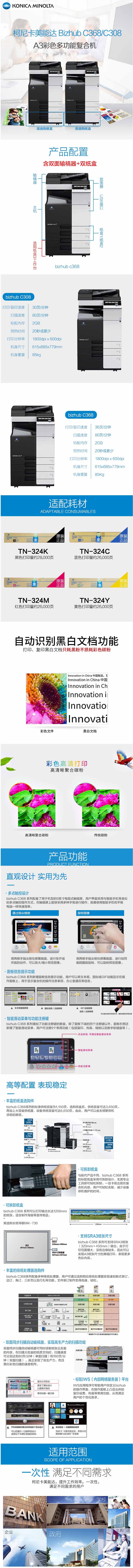 • 商品名稱:柯尼卡美能達(dá) KONICA MINOLTA bizhub C368 A3彩色復(fù)合機(jī) 36頁/分鐘 含主機(jī) 輸稿器 雙紙盒 適用耗材:TN-324系列 上門安裝
