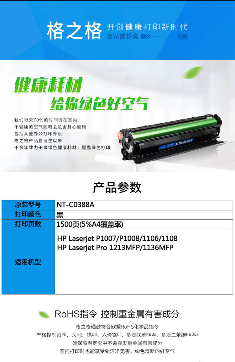 格之格 (G&G) NT-C0388A 黑色硒鼓 80g 打印量1500頁(kj)