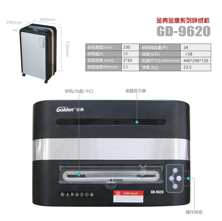 金典(GOLDEN) GD-9620 碎紙機(jī)辦公單次20張碎紙機(jī)家用靜音4級保密可碎光盤 (kj)