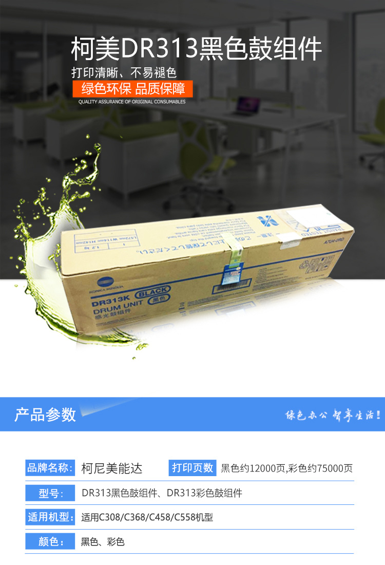 - 商品名稱:柯尼卡美能達(dá)(KONICA MINOLTA)DR313 黑色鼓組件適用于C308/C368/C458/C558(kj)