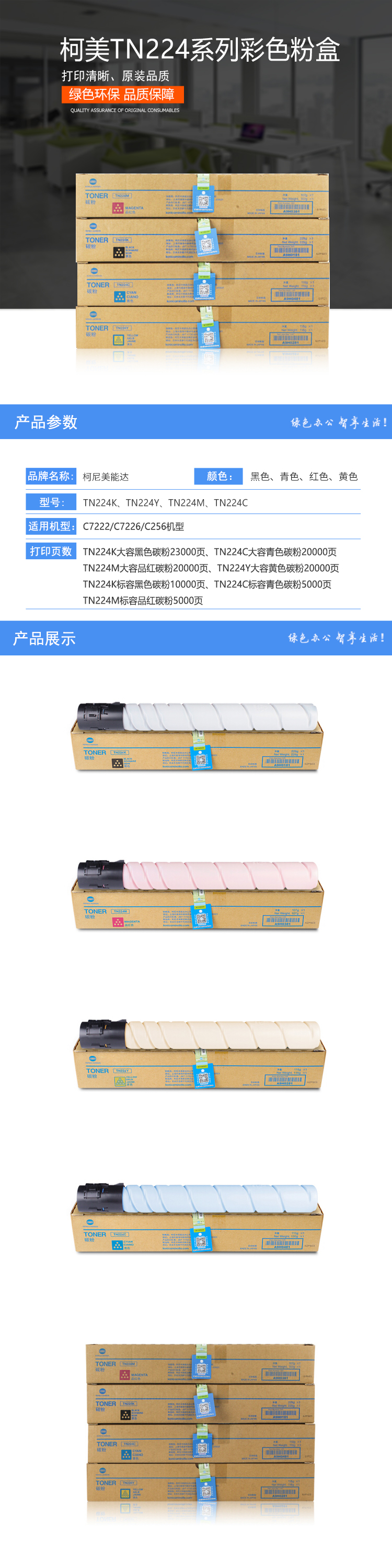 - 商品名稱:柯尼卡美能達(dá)(KONICA MINOLTA)TN224Y 小容量黃粉適用于C7222/C7226/C256 TN224(KJ)