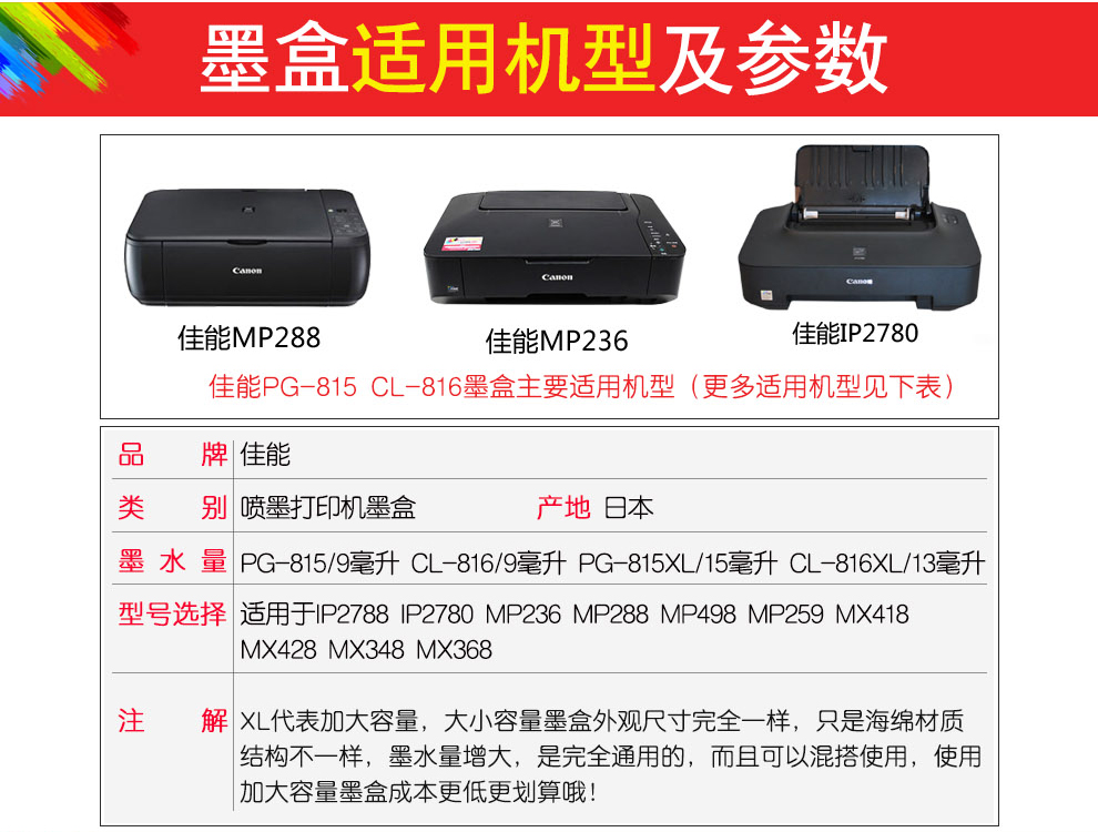 • 商品名稱:佳能(Canon)PG-815 黑色 墨盒 適用于ip2780 ip2788 MP236 MP498 MP288 MP259 MX428 MX418 MX368 MX358 MX348(kj)