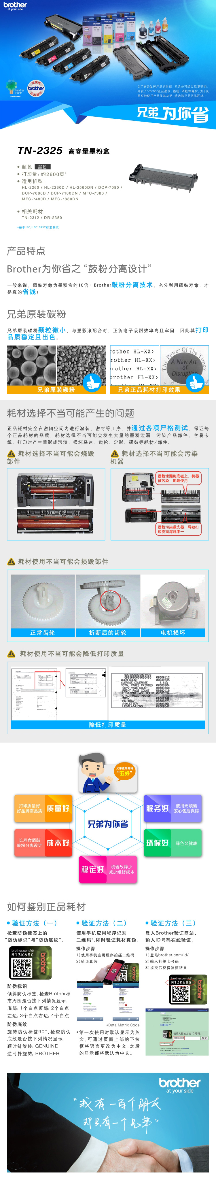 - 型號:兄弟(brother) TN-2325 黑色粉盒 打印量2600頁 (適用兄弟7380/7480/7880、7080/7080D/7180、2260/2260D/2560)
