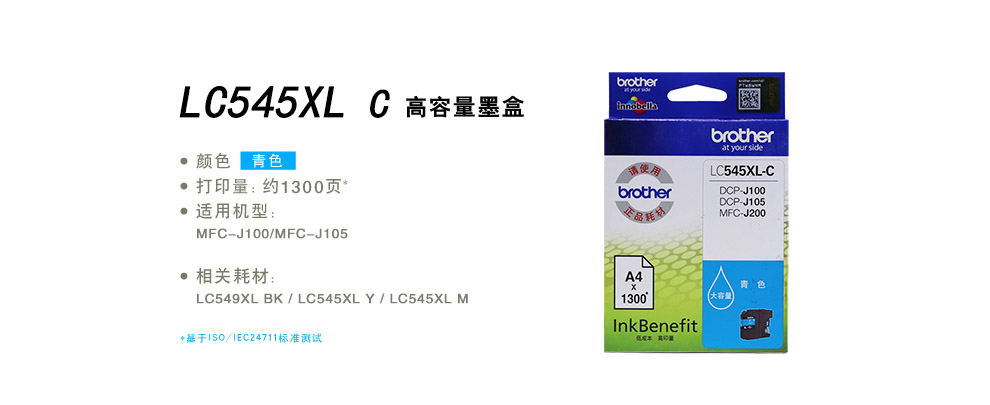 • 商品名稱(chēng):兄弟(brother)原裝545彩色墨盒 549黑色墨盒 適用于DCP-J100 MFC-J200 DCP-J105 4色套裝