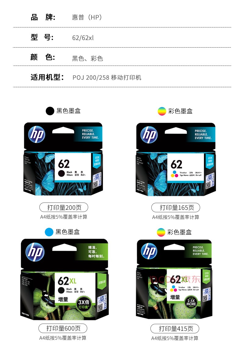 • 型號(hào):惠普(HP) C2P04AA 原裝惠普 62號(hào) 黑墨盒(HP 200 )C2P04AA