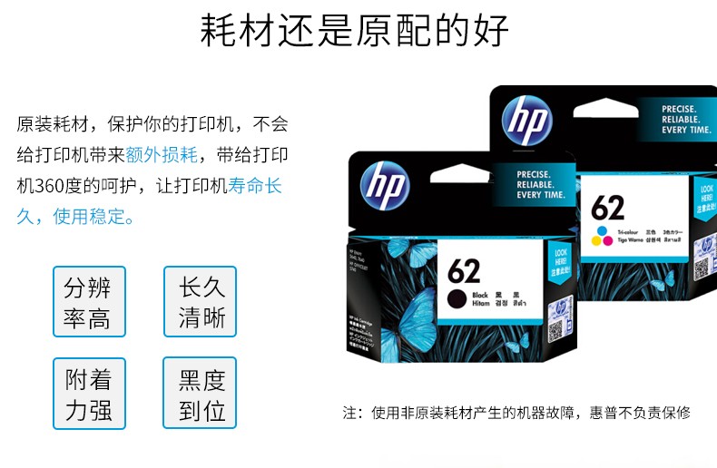 惠普(HP)C2P04AA 62 原裝黑色墨盒 (適用于HP OfficeJet 200 移動(dòng)打印機(jī))(kj)