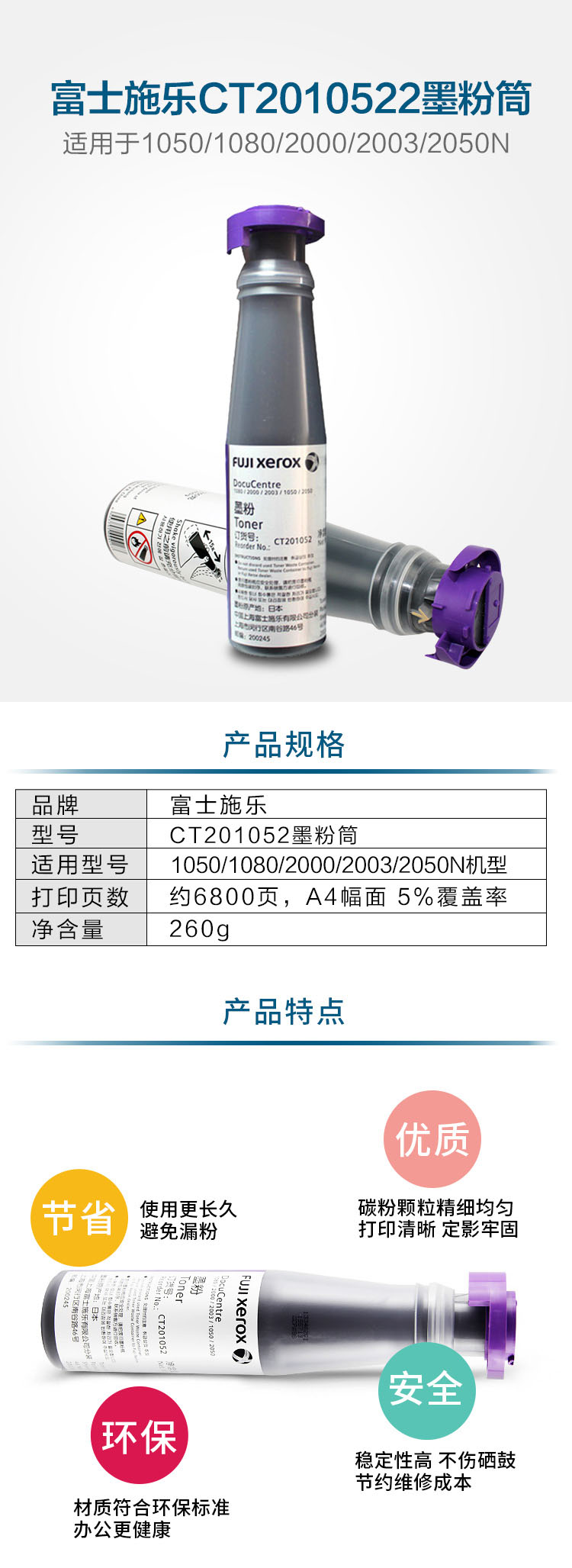 - 商品名稱(chēng):富士施樂(lè)(Fuji Xerox)CT201052 墨粉碳粉(適用于1050/1080/2000/2003/2050N機(jī)型) 黑色