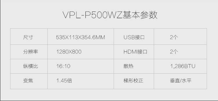 • 標(biāo)準(zhǔn)顯示分辨率:SONY VPL-P500WZ