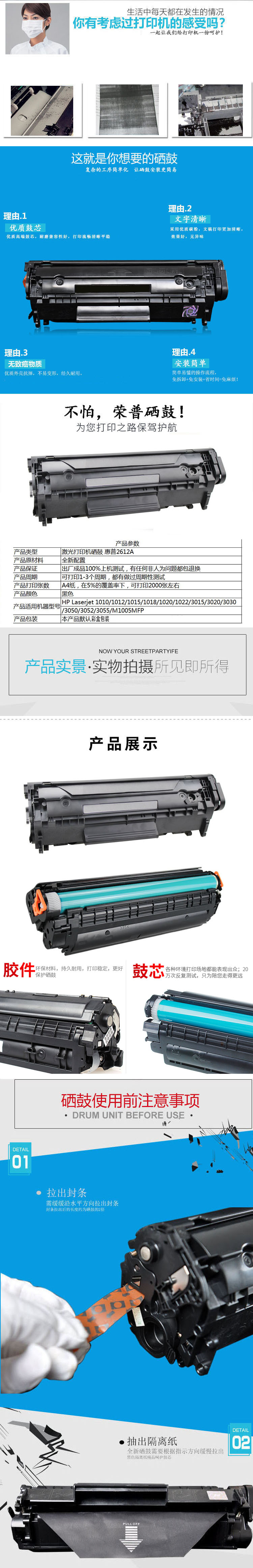 - 商品名稱:榮普 Q2612 硒鼓 2000頁 黑色 2612A 適用于HP Laserjet 1010/1012/1015/1018/1020/1022/3015/3020/3030/3050/3052/3055/M1005MFP(kj)