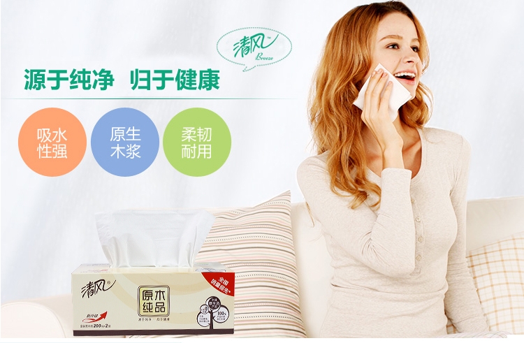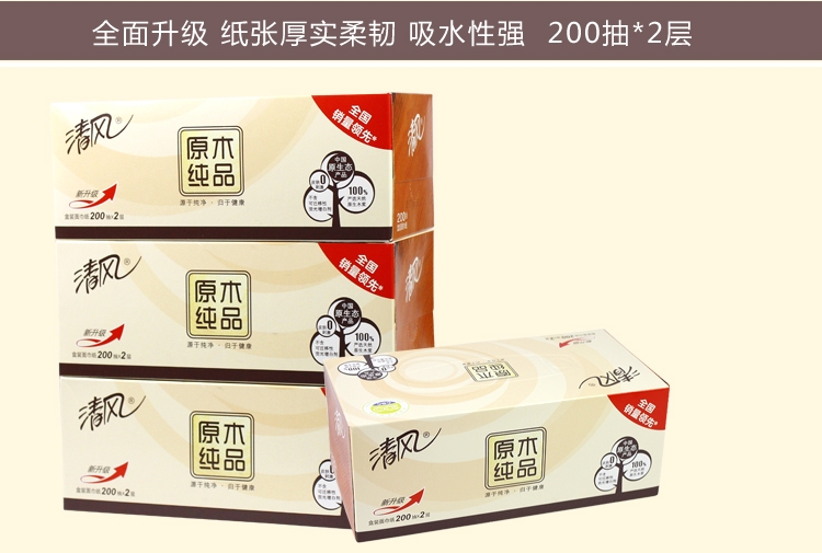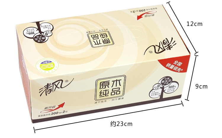 清風(fēng) 原木純品盒裝抽紙 B338CN 白色 2層 206*195mm 200抽/盒 36盒/箱 單盒價(jià)格 1箱起送(kj)