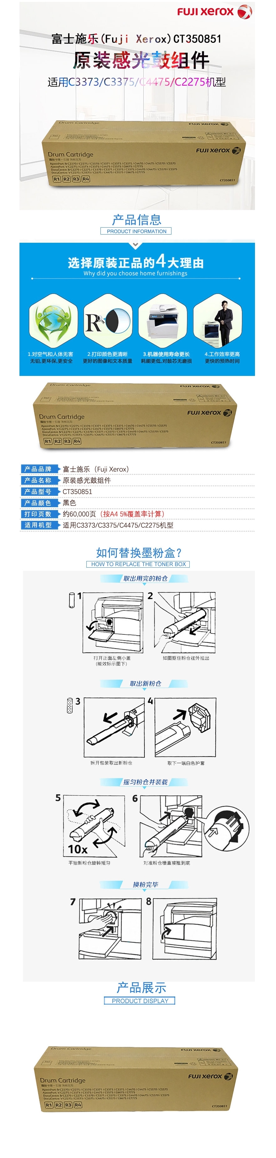 • 商品名稱:富士施樂(FujiXerox) CT350851 原裝感光鼓組件 約60000頁 (適用C3373/C3375/C4475/C2275機(jī)型)