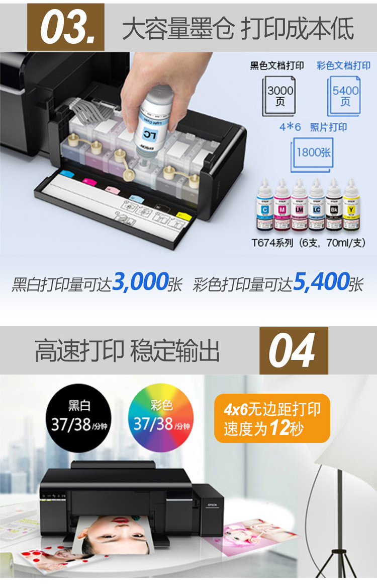 • 商品名稱:愛普生(EPSON) L805墨倉式彩色噴墨打印機 A4幅 支持wifi無線手機打印
