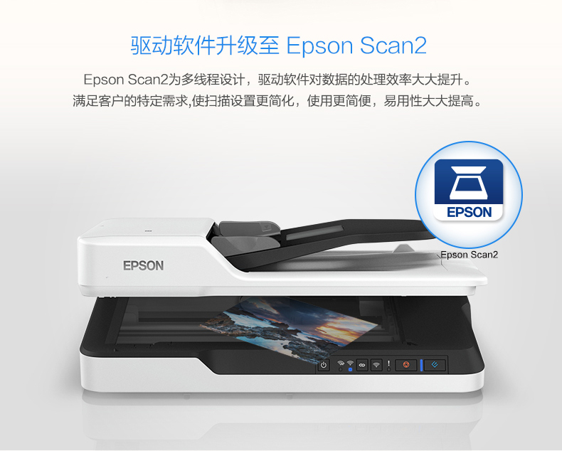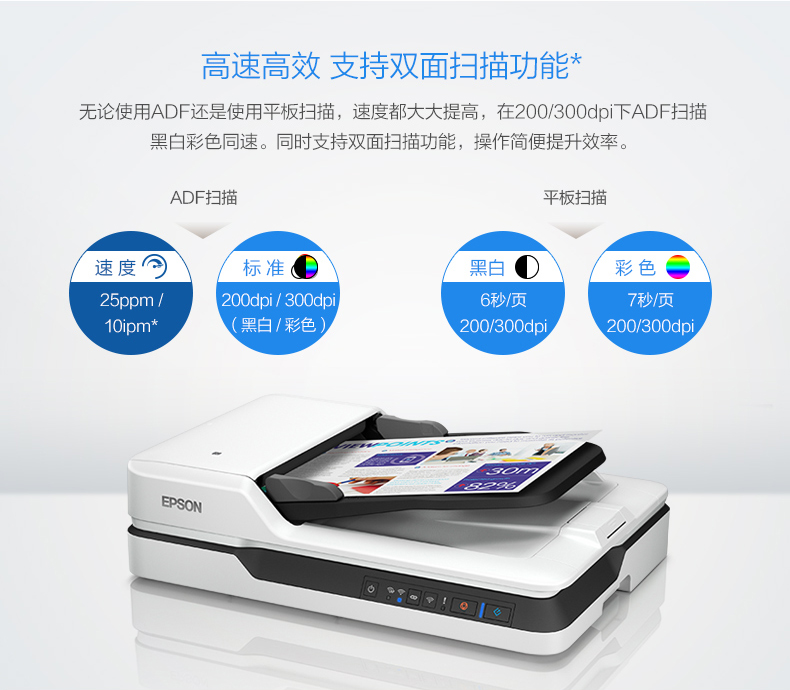 愛(ài)普生(EPSON) DS-1660W A4 ADF+平板 25ppm高速彩色文檔掃描儀 Wifi無(wú)線掃描 自動(dòng)進(jìn)紙