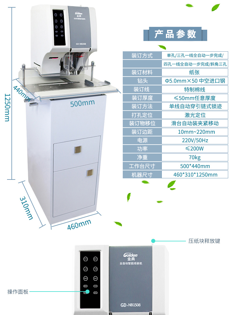 • 商品名稱:金典GD-NB1508線裝檔案裝訂機(jī) 激光定位 一線全自動(dòng)一步完成(kj)
