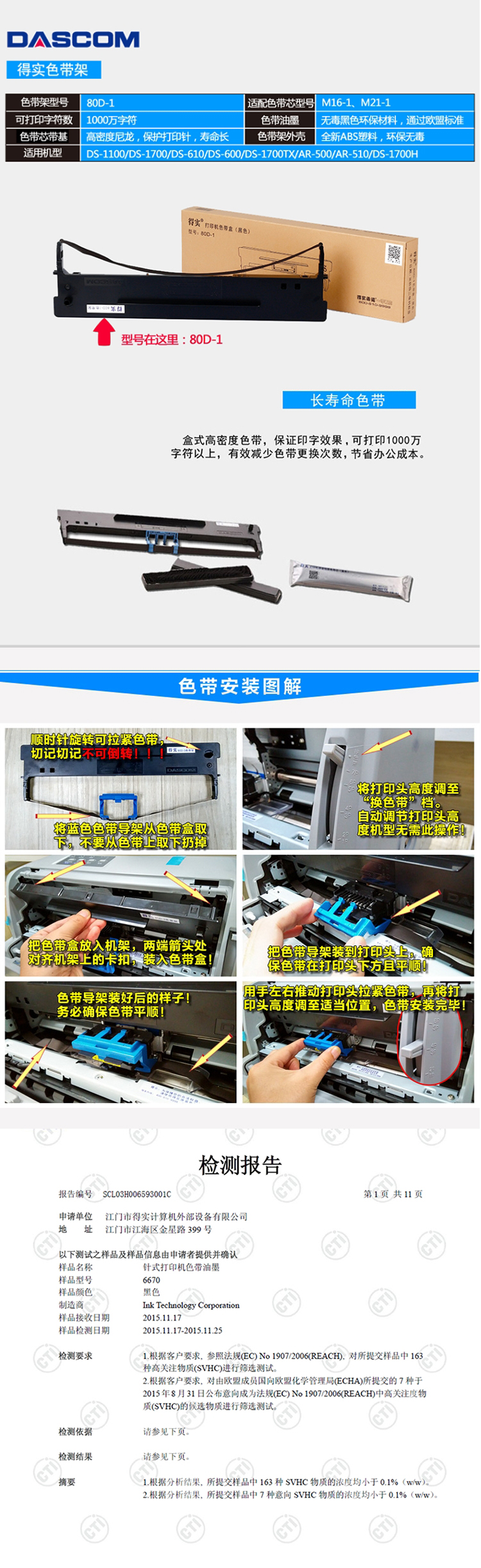 得實(Dascom)打印機色帶 80D-1 適用于DS-610 DS170 黑色(kj)