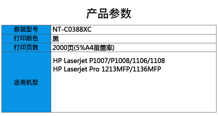 格之格 NT-C0388XC 硒鼓 適用于HP Laserjet P1007/P 1008/1106/1108/M 126a/M 126nw/ M128fn / M128fp/M128fw/M226dn/M226dw/M202n/M202dw/M1219nf/M1216nfh/M1213nf/M1136/M1218nfs/ 388 388A (kj)