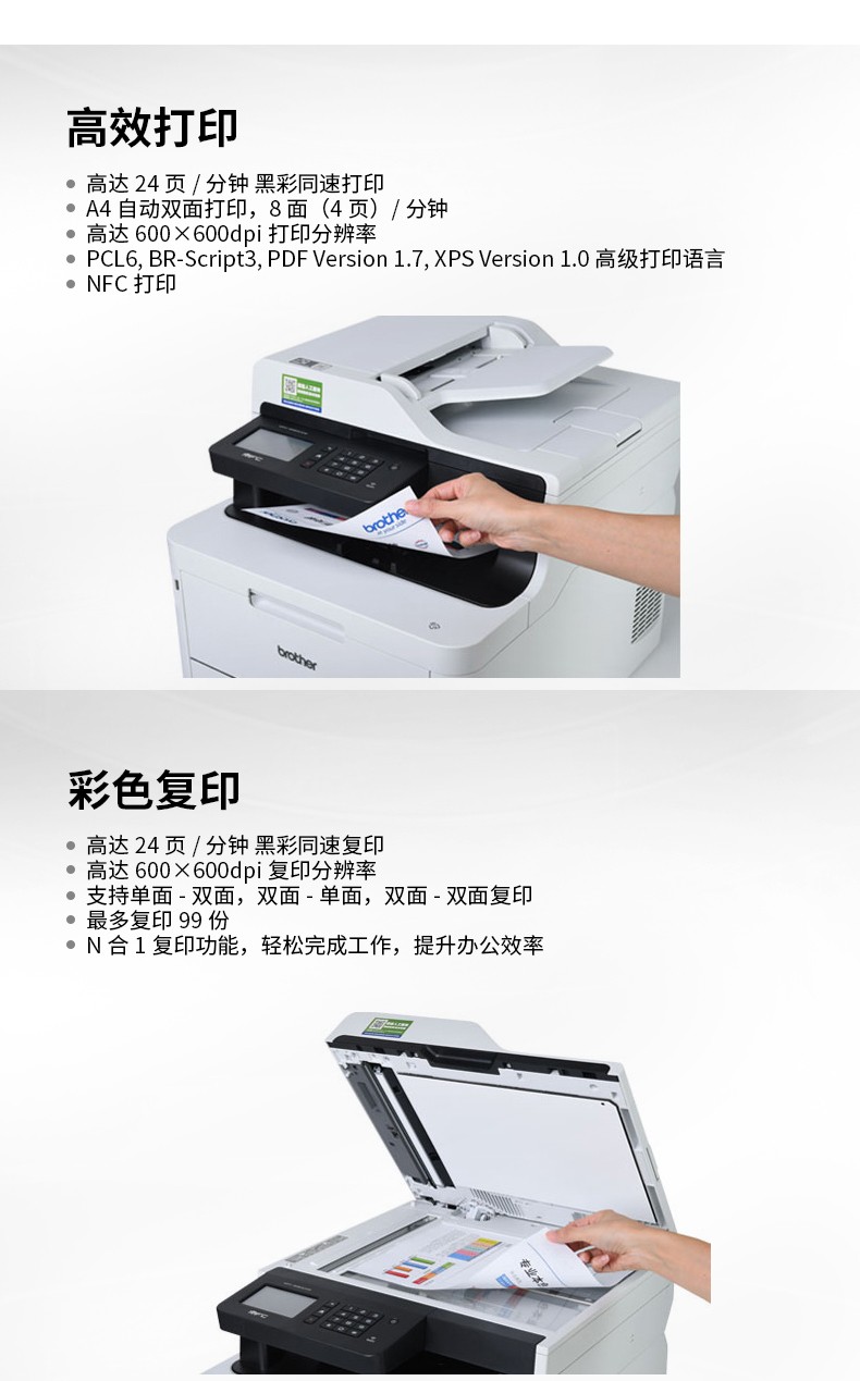 • 打印速度:黑白彩色打印速度24ppm
