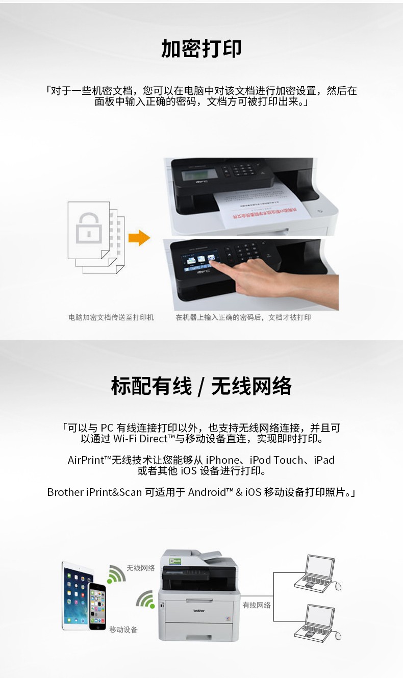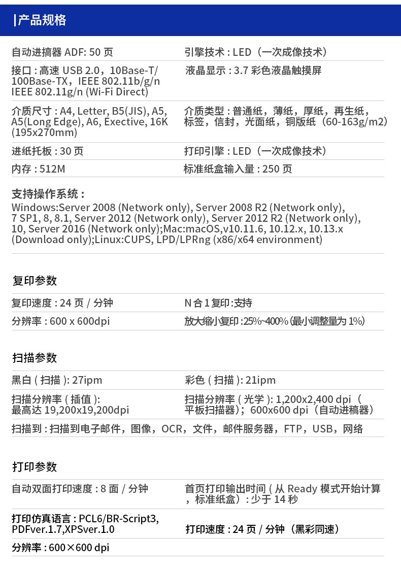 • 網(wǎng)絡(luò)功能:有線/無線網(wǎng)絡(luò)打印