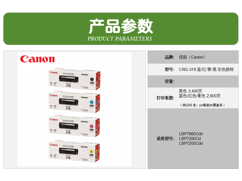 • 商品名稱:佳能(Canon) CRG-318 Y 黃色硒鼓(LBP7200cd/7200cdn/7660cdn/7200C/7600C/7660C/7680C)(kj)