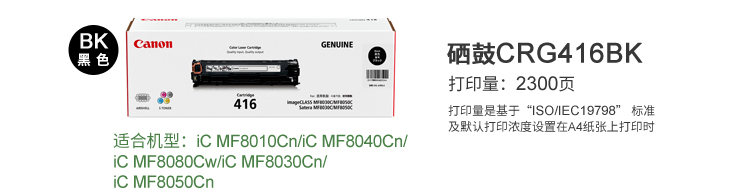 • 商品名稱:佳能(Canon)CRG-416 BK 硒鼓(適用iC MF8050Cn 8030cn 8010cn 8080Cw)(kj)