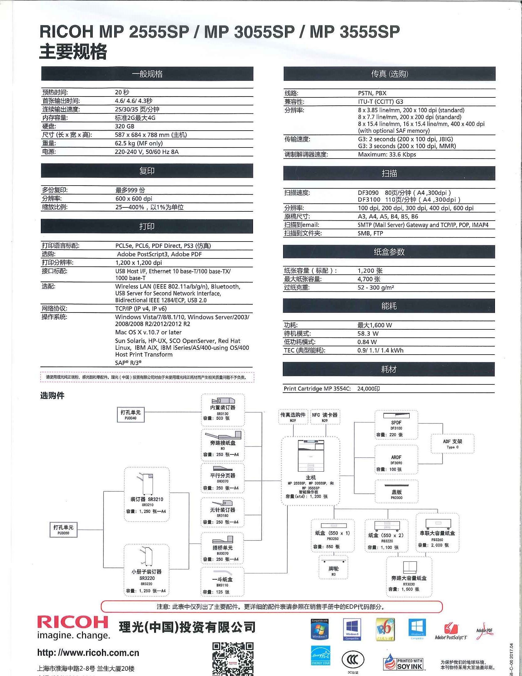 • 商品名稱:理光(RICOH)黑白復印機MP 3555SP 35頁/分鐘 A3幅面 1200*1200dpi 復印/打印/掃描 有線網(wǎng)絡 自動雙面 雙面自動輸稿器 四紙盒 一年保修