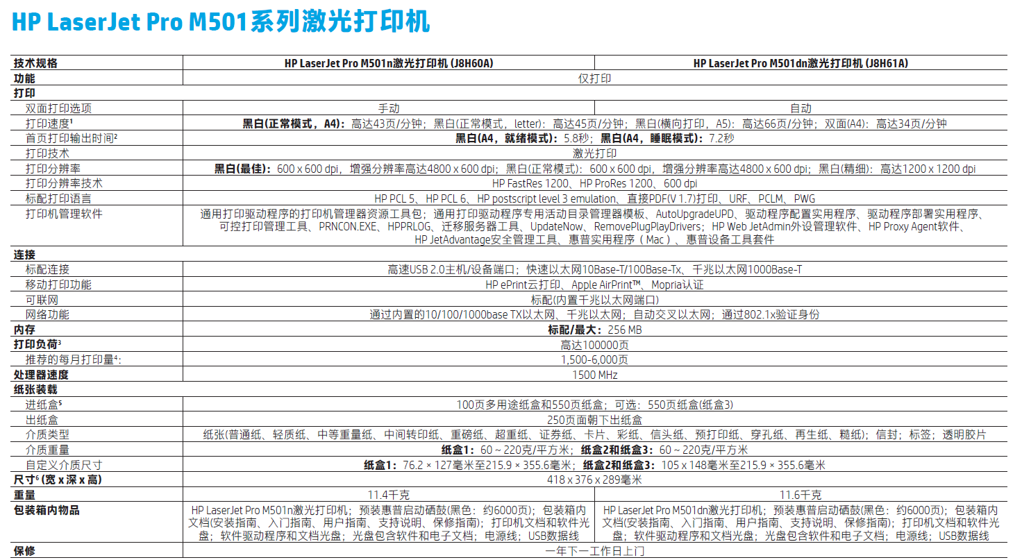 - 型號:LaserJet Pro M501dn