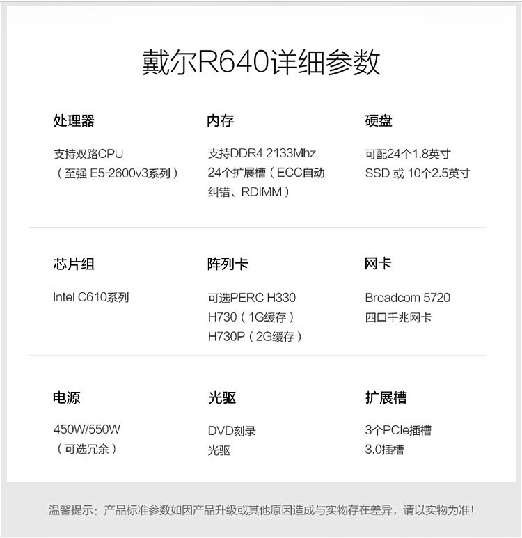 • 商品名稱:戴爾(DELL)R640 1U雙路至強 冗余電源主機 1顆銅牌3104 6核6線程 32G內(nèi)存丨3*1.8T 10K硬盤
