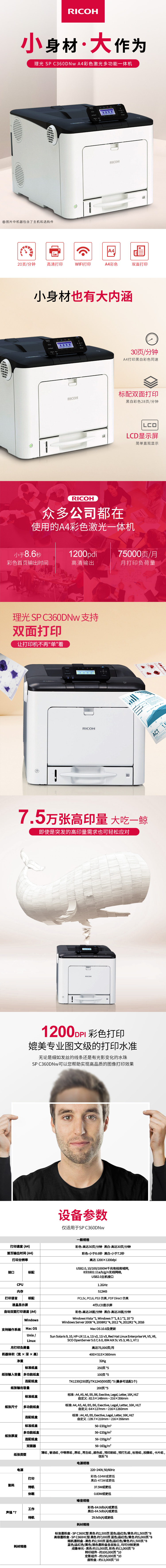 - 商品名稱:理光(Ricoh)SP C360DNw A4彩色激光打印機(jī)(主機(jī))