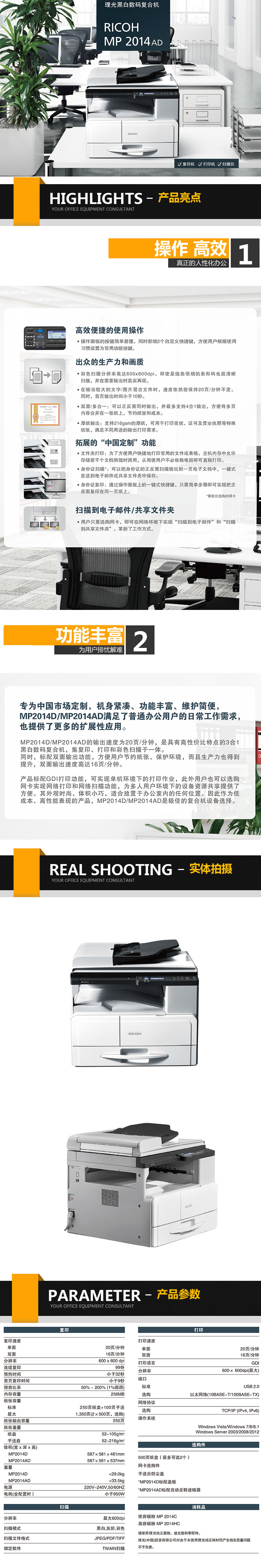 - 商品名稱:理光(Ricoh)MP 2014AD A3黑白數(shù)碼復(fù)合機(jī)(主機(jī)標(biāo)配網(wǎng)絡(luò)+輸稿器)