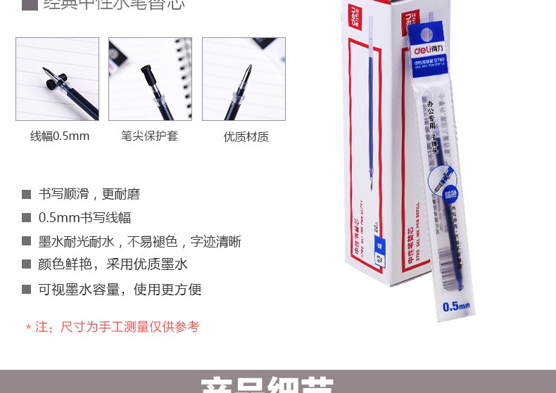 • 型號(hào):得力 中性筆芯 S760 0.5MM 紅色