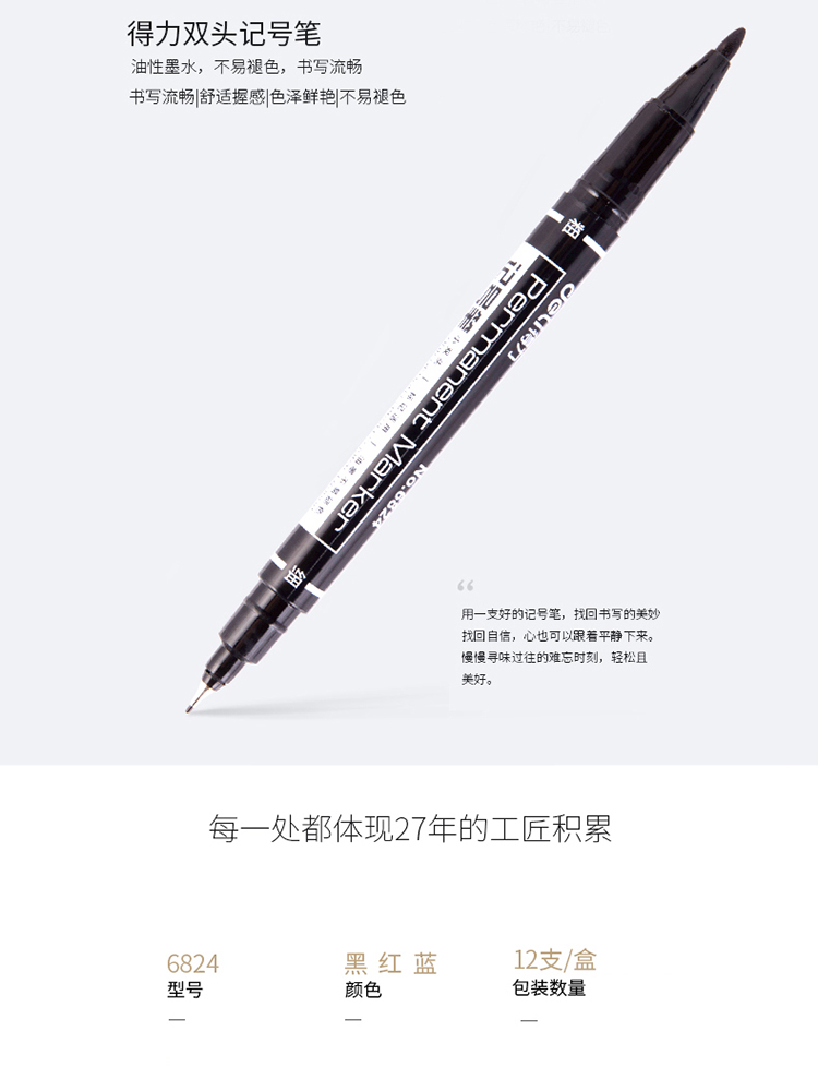 得力(deli) 6824 紅色雙頭多用油性記號(hào)筆 12支/盒 (kj)