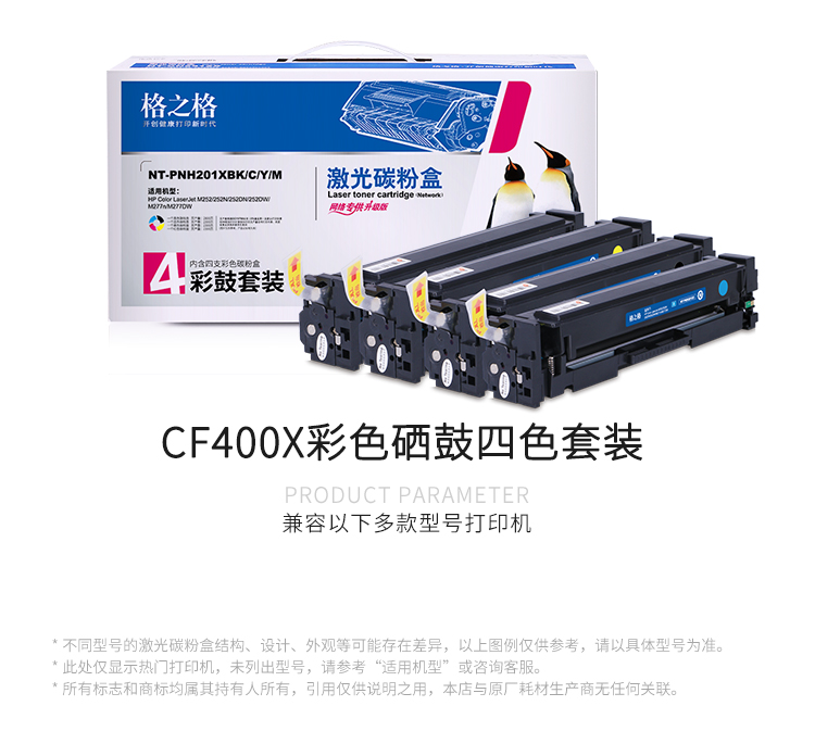 格之格 CF400A大容量硒鼓四色套裝PNH201X四支裝 適用m277dw M252 252N 252DN 252DW打印機 201a硒鼓