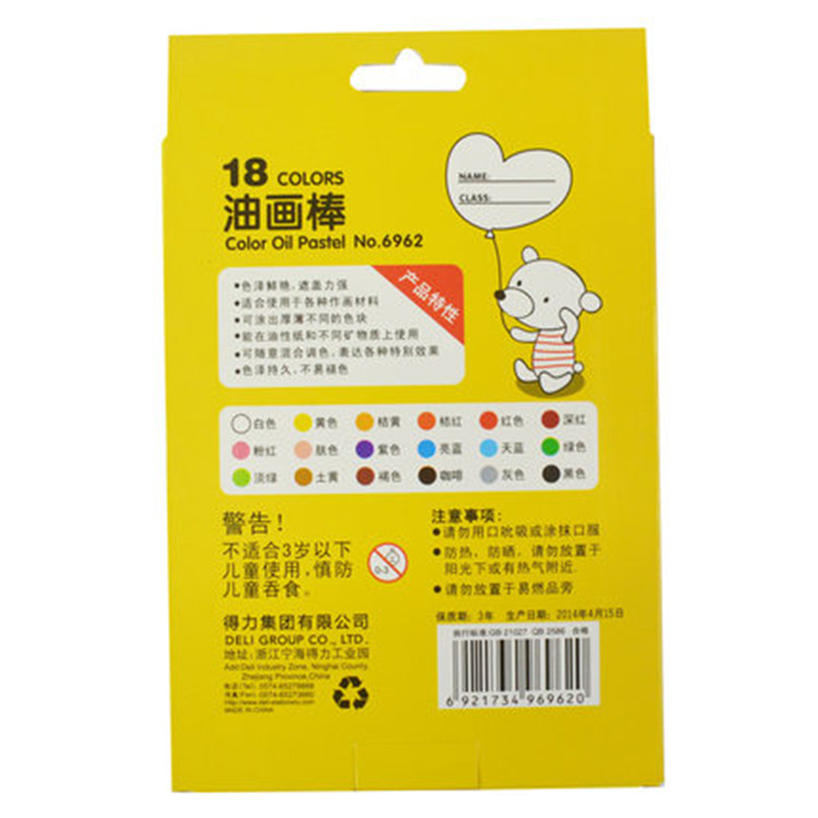 • 商品名稱:得力 6962 油畫棒-18色(混)(18支/盒) (kj)