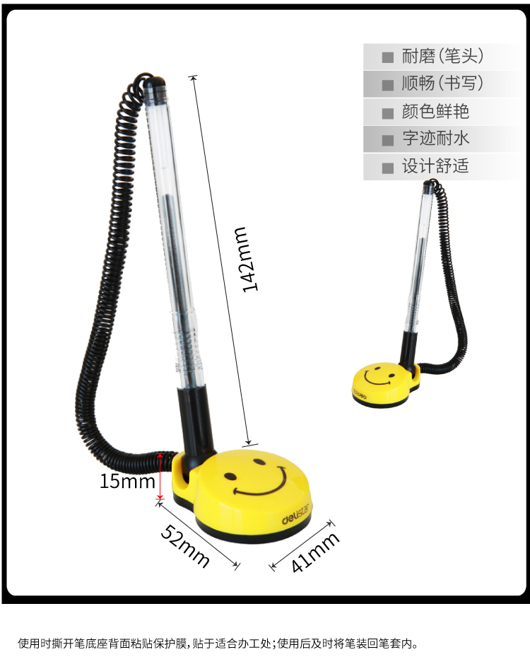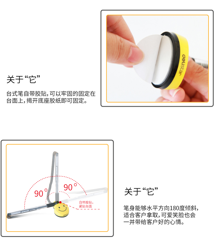 • 商品名稱:得力(deli) 6793 0.5mm 黑色微笑 辦公桌面臺筆 可粘貼臺式中性筆單支(kj)