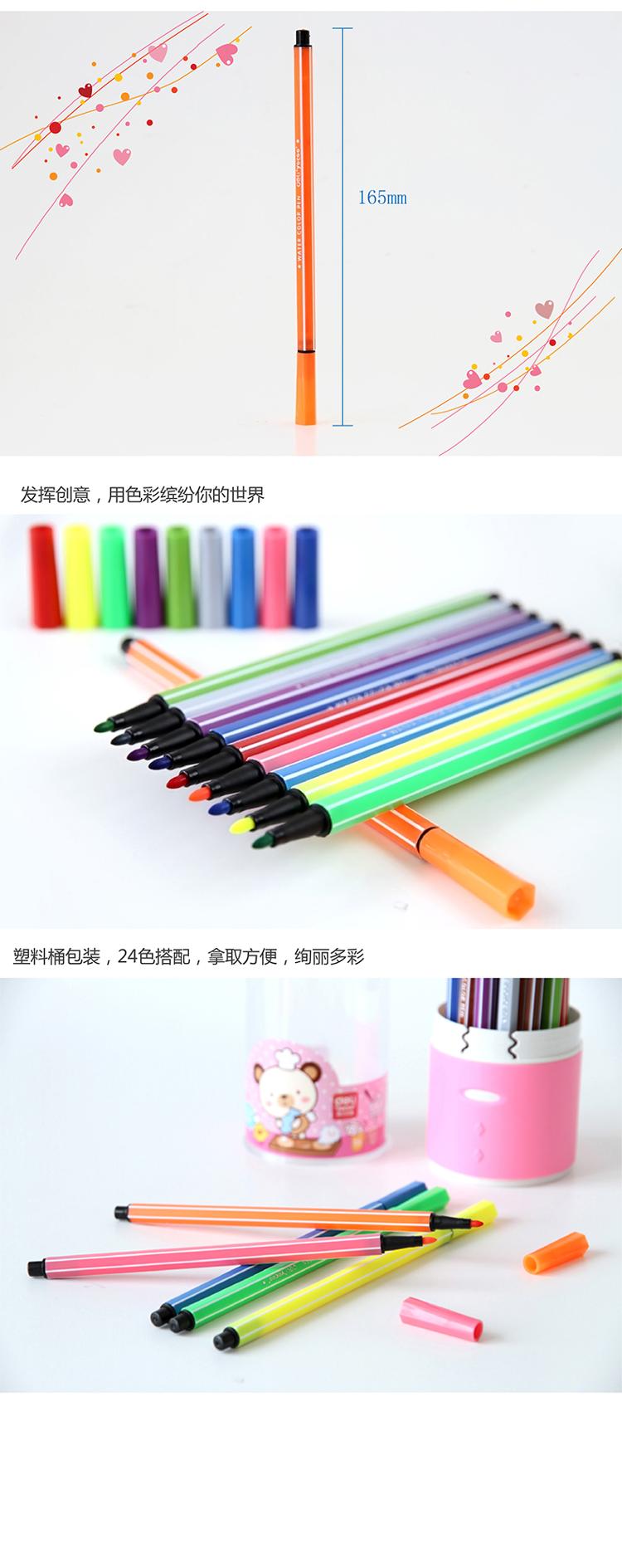 • 型號(hào):得力 DELI 7067 絢麗多彩可洗水彩筆/繪畫(huà)筆 24色/筒 包裝粉