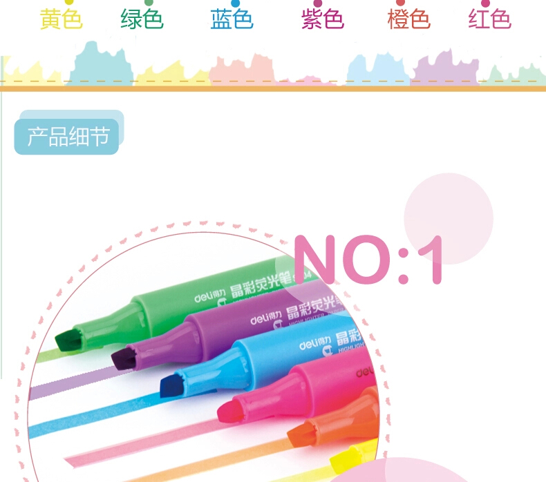• 商品名稱:得力 晶彩熒光筆 33111 6支/盒 混色(kj)